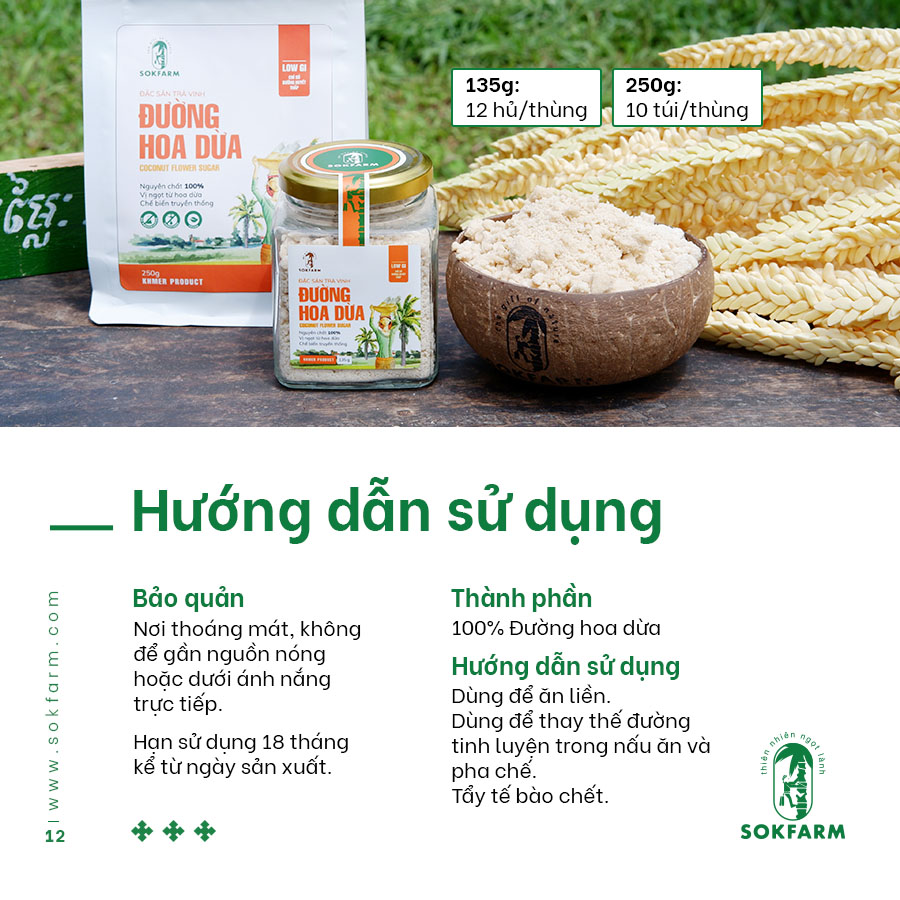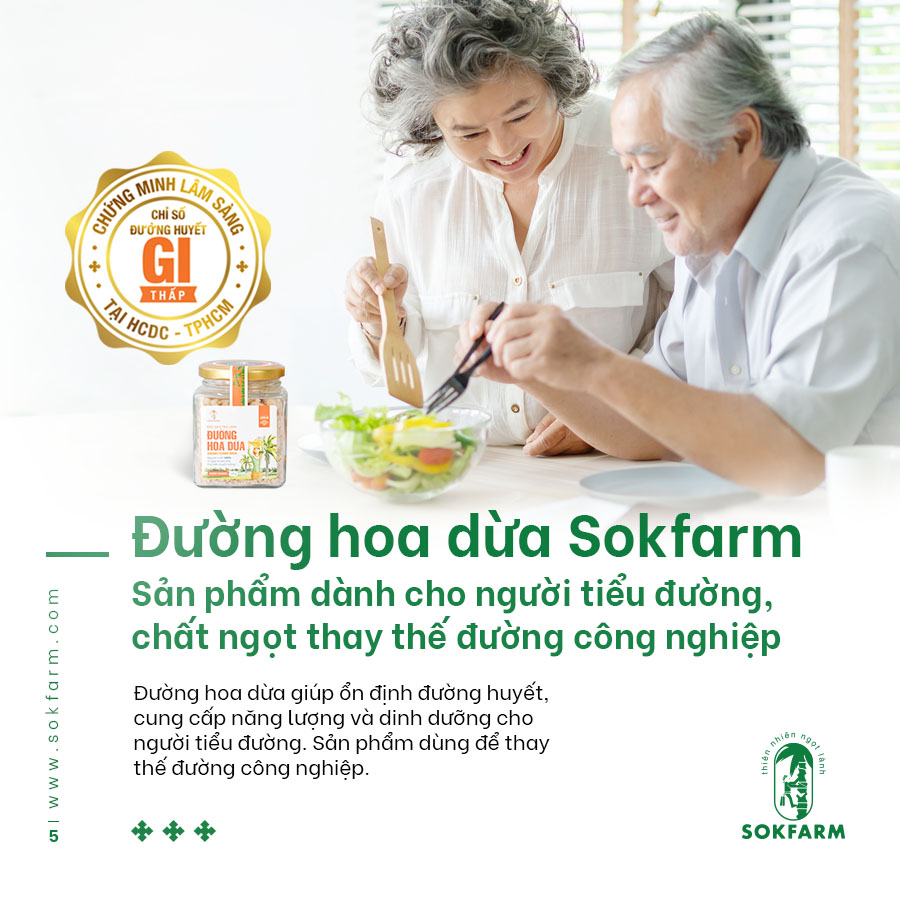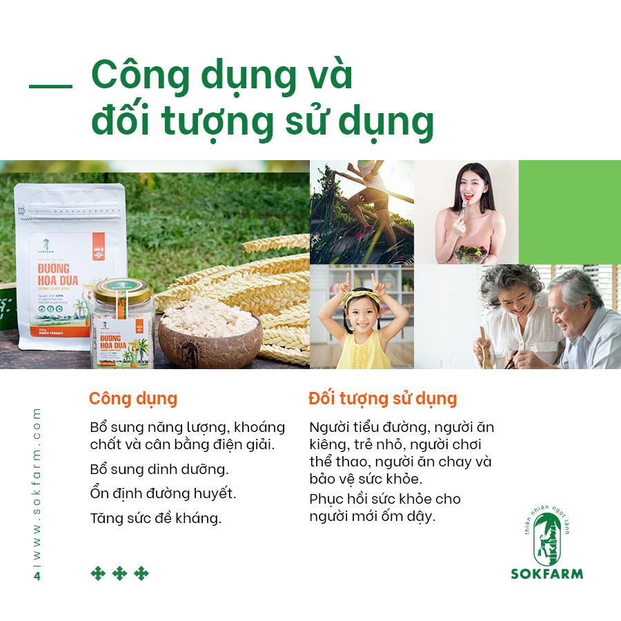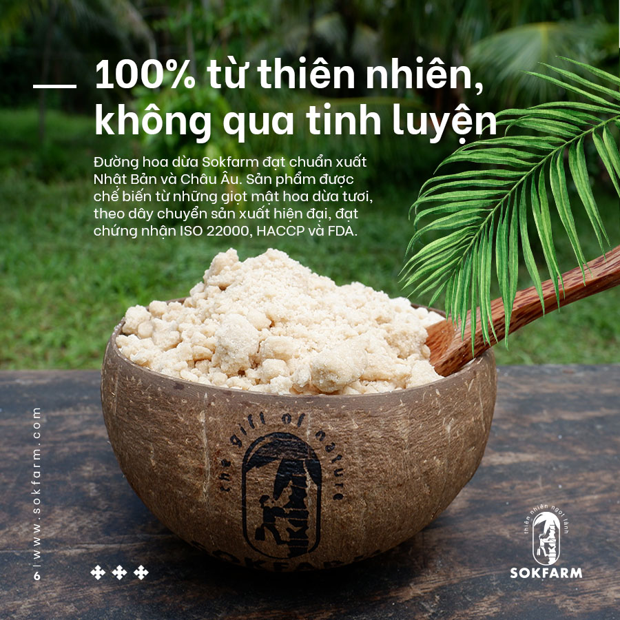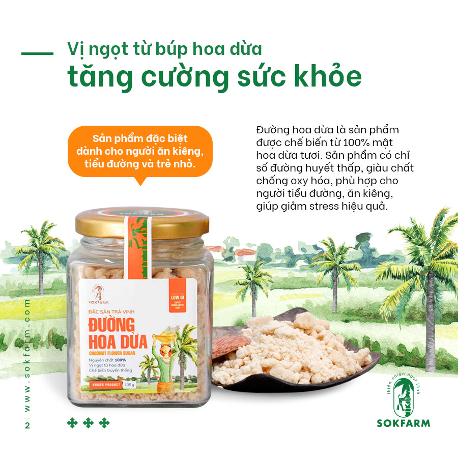 Đường hoa dừa là sản phẩm được chế biến từ 100% mật hoa dừa tươi. Sản phẩm có chỉ số đường huyết thấp, giàu chất chống oxy hóa, phù hợp cho người tiểu đường, ăn kiêng, giúp giảm stress hiệu quả.